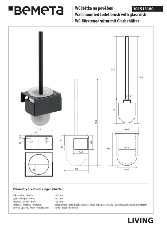 Ершик Bemeta LIVING 101513180 (чёрный матовый) настенный