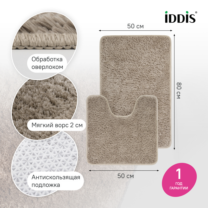 Набор ковриков для ванной IDDIS Base BSET07Mi13 50*80/50*50 см (светло-коричневый)
