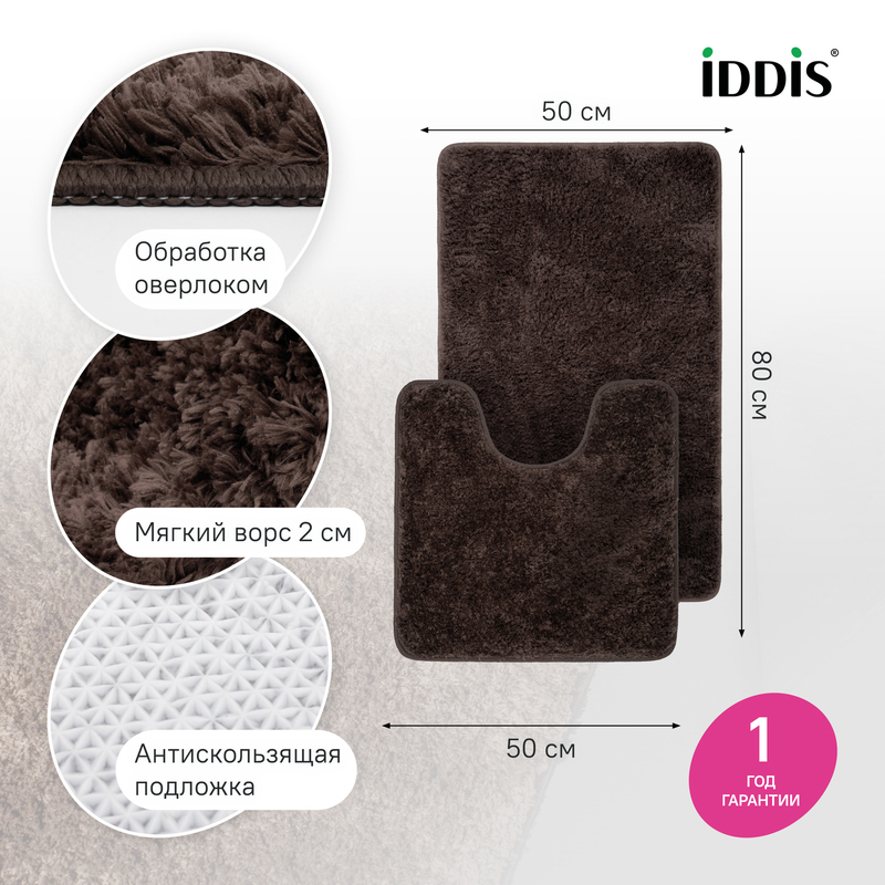 Набор ковриков для ванной IDDIS Base BSET08Mi13 50*80/50*50 см (темно-коричневый)