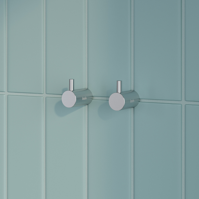 - Набор из двух одинарных крючков Petite в цвете матового хрома позволит с комфортом разместить банные полотенца и халаты, дополнив места для хранения в ванной.
