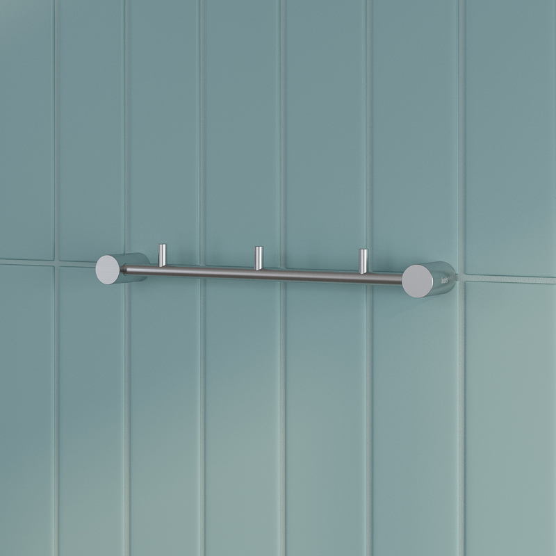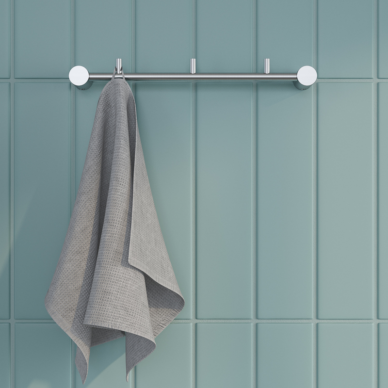 - Планка с тремя крючками Petite в цвете матового хрома позволит с комфортом разместить несколько банных полотенец и халатов, дополнив места для хранения в ванной.