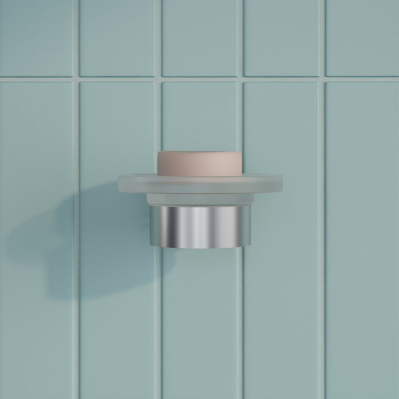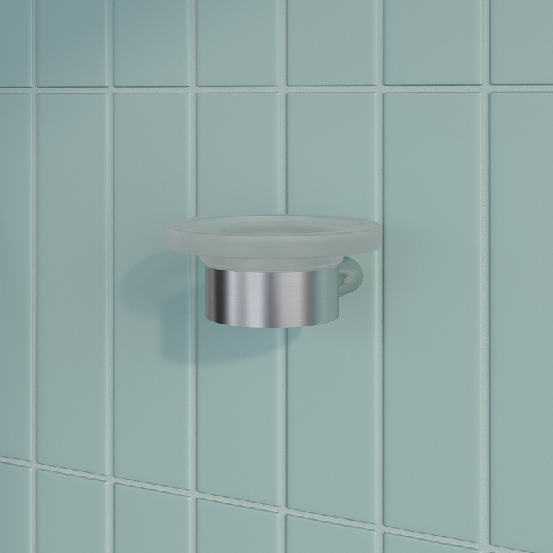 - Мыльница из матового стекла легко вынимается из держателя, и её просто промыть.