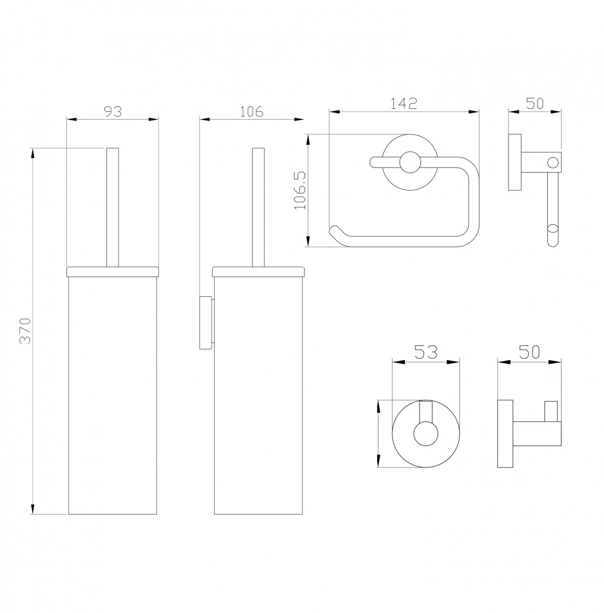 - Комплектация Крючок настенный / Держатель для туалетной бумаги / Туалетный ёршик