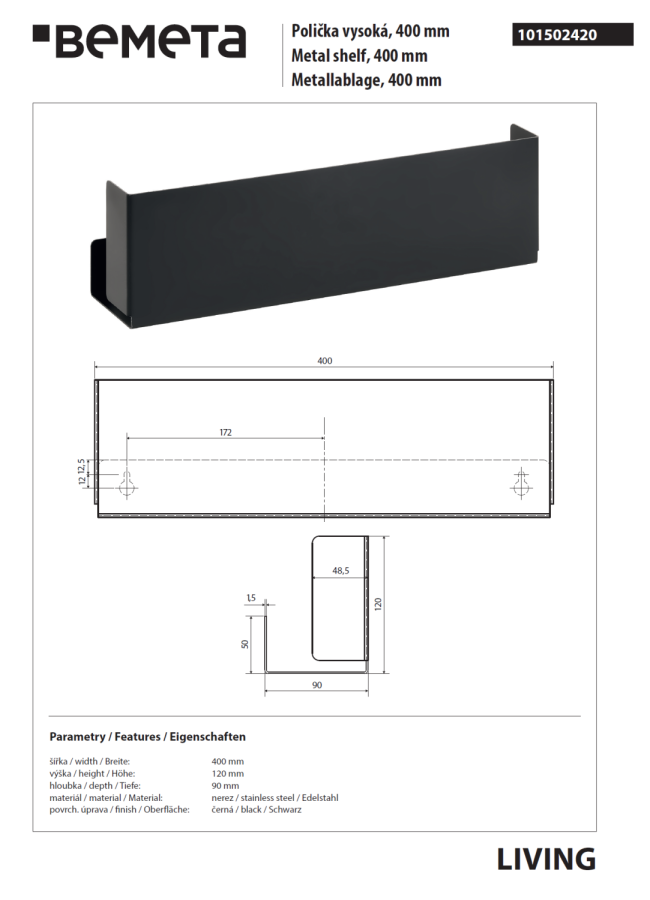 Полка для ванной комнаты Bemeta LIVING 101502420 (чёрный матовый)