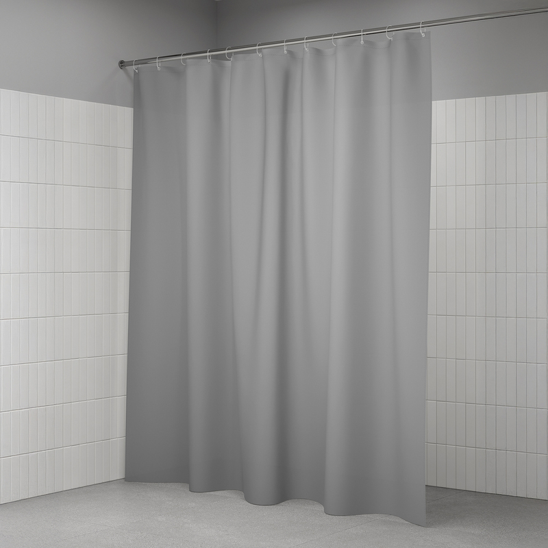 Текстильная светло-серая штора для ванной будет гармонично смотреться и в светлом, и в темном интерьере. Увеличенный размер – 200х240 см.