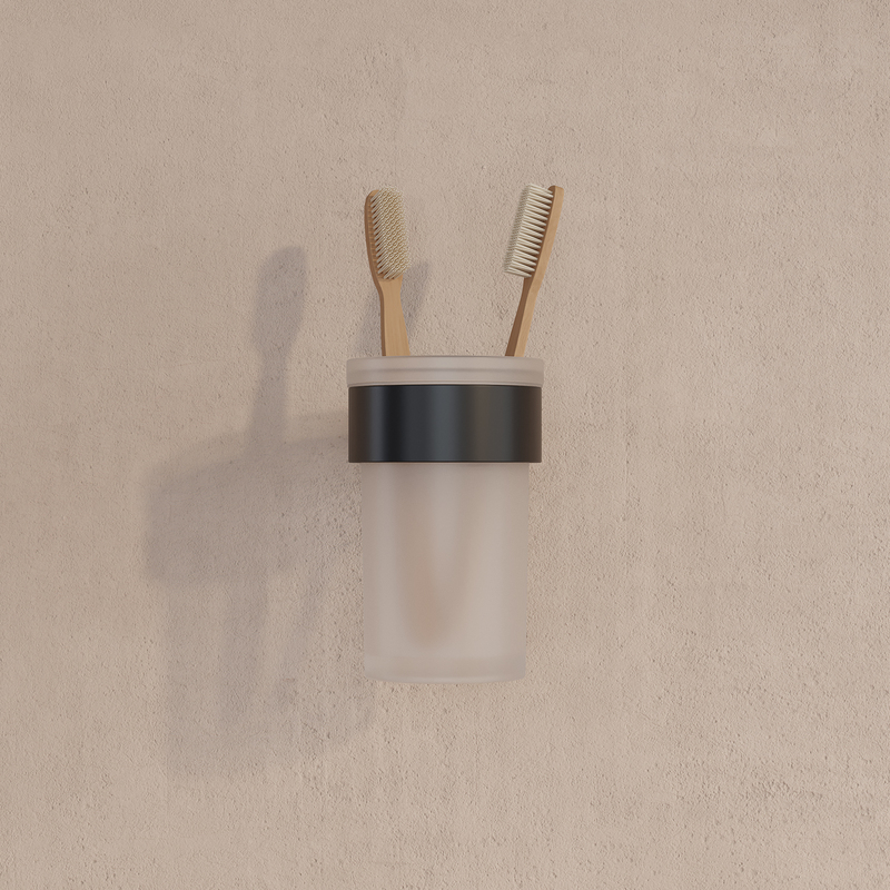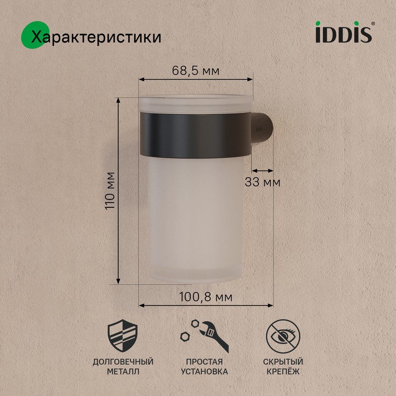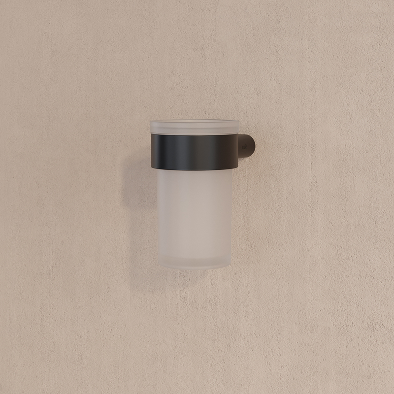 Стакан для ванной комнаты IDDIS Petite PETBLSGi45 (черный матовый/стекло матовое)