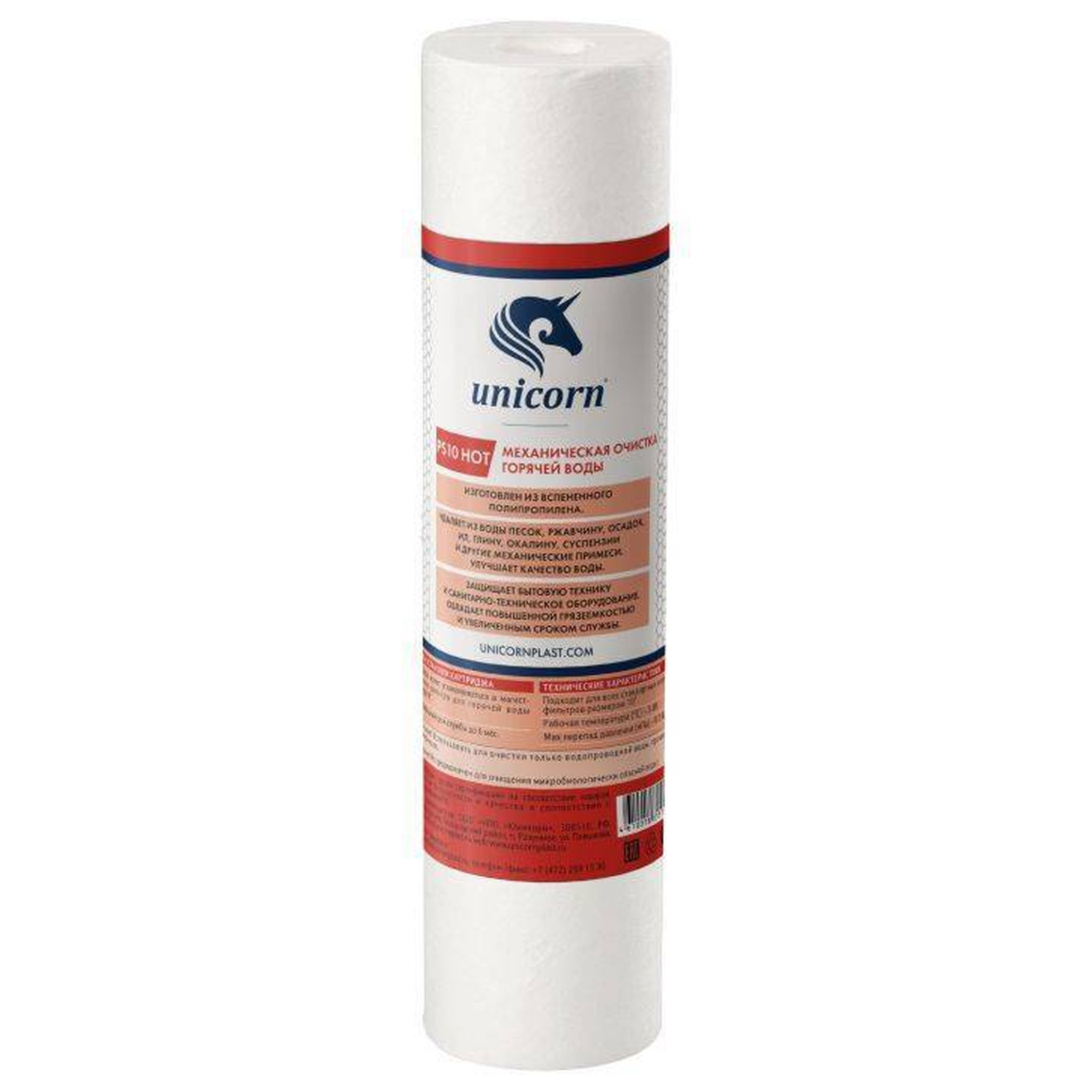 Механический картридж Unicorn на горячую воду, 10'', 5 мкм, РS 1005 Hot 541197 изготовлен из полипропиленового волокна, которое не вступает в реакцию с химикатами и не разрушается под воздействием бактерий.