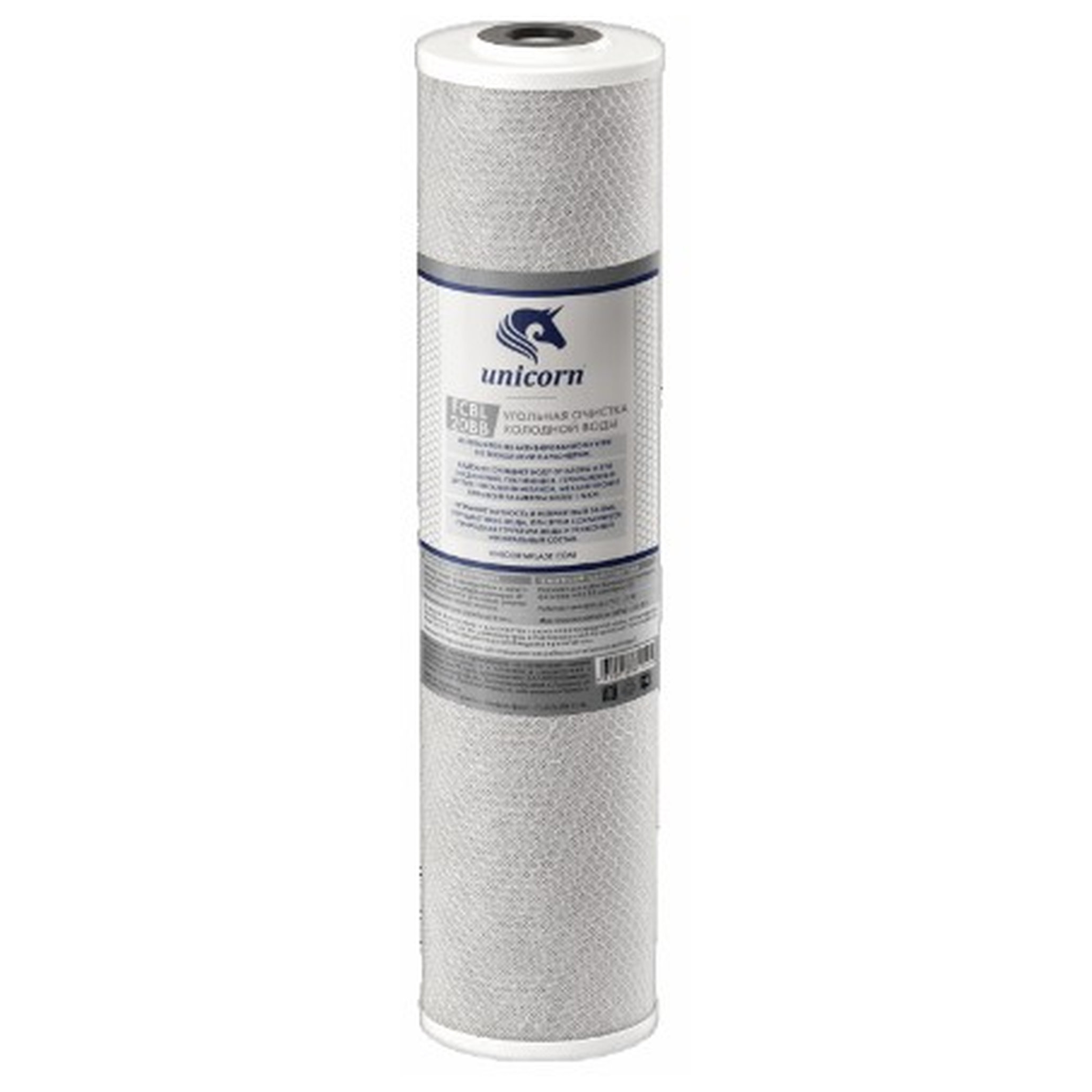 Картридж угольной брикет FCBL 20ВВ Unicorn. Катридж из прессованного угля для сорбционной очистки воды от хлора, органических соединений, улучшает органолептические показатели воды (вкус, запах, цвет).