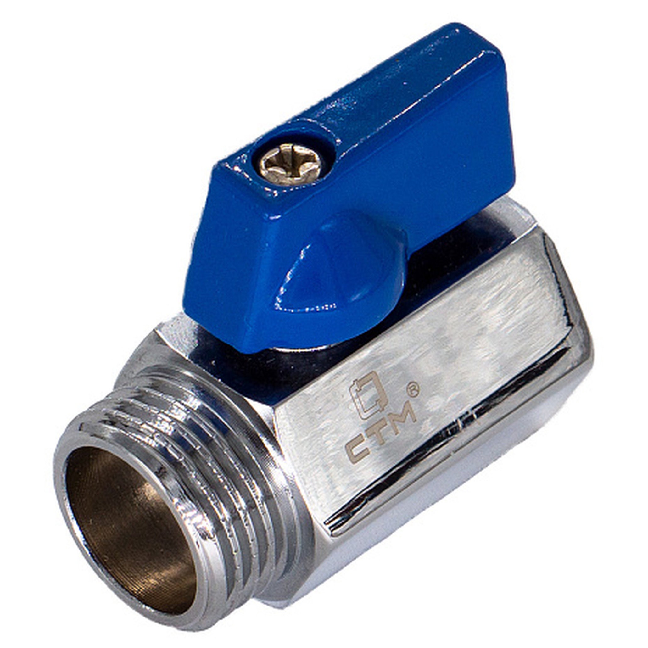 CTM хромированный с внутренней/наружной резьбой применяется в качестве запорной арматуры на трубопроводах систем питьевого, хозяйственно-бытового назначения, систем холодного и горячего водоснабжения к бытовым и сантехническим приборам. Корпус крана изготовлен из высококачественной горячепрессованной латуни с хромированным покрытием (толщина гальванопокрытия 0 2 мкм). Шаровой затвор изготовлен из высококачественной горячепрессованной латуни отполирован и покрыт хромом. Герметичность затвора крана соответствует наиболее высоком классу по ГОСТу 9544-2005 – А. Кран оснащен алюминиевой ручкой флажкового типа окрашенной в синий цвет (ручка красного цвета идёт в комплекте). Техническое обслуживание крана в течение всего срока эксплуатации не требуется (средний срок службы – 15 лет, средний ресурс наработки на отказ – 10000 циклов). Индивидуальная блистерная упаковка содержит всю необходимую техническую информацию.