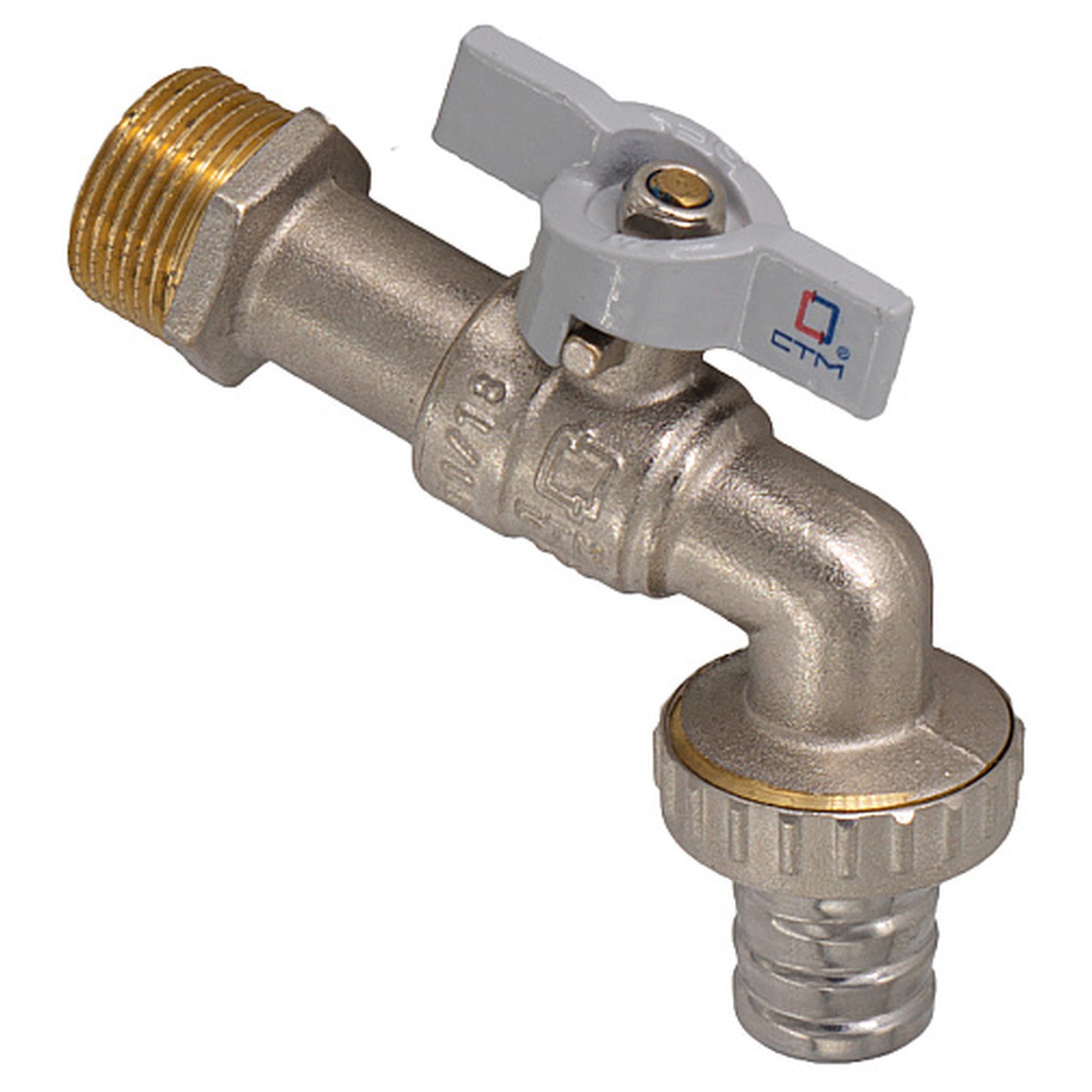 водоразборный рычаг CTM Стандарт применяется в качестве запорной арматуры на трубопроводах систем водоснабжения, в том числе питьевого. Особенности конструкции, технологии изготовления, применяемых материалов обеспечивают долголетнюю работу шарового крана СТМ Стандарт при эксплуатации в условиях отечественных инженерных систем. Корпус и шток крана изготовлен из высококачественной горячепрессованной латуни с никелированным покрытием. Шаровой затвор изготовлен из высококачественной горячепрессованной латуни, отполирован и покрыт хромом. Герметичность затвора крана соответствует наиболее высоком классу по ГОСТу 9544-2005 – А. Наличие тефлоновых седельных колец и сальниковой прокладки позволяет использовать шаровой кран СТМ Стандарт в системах с рабочей температурой до 150ºС. Наличие съемного штуцера с накидной гайкой дает возможность производить его замену в зависимости от диаметра и материала применяемого шланга. Оптимальная длина резьбы обеспечивает надёжное соединение. Кран оснащен алюминиевой ручкой-бабочкой. Техническое обслуживание крана в течение всего срока эксплуатации не требуется (средний срок службы – 20 лет, средний ресурс наработки на отказ – 35000 циклов).