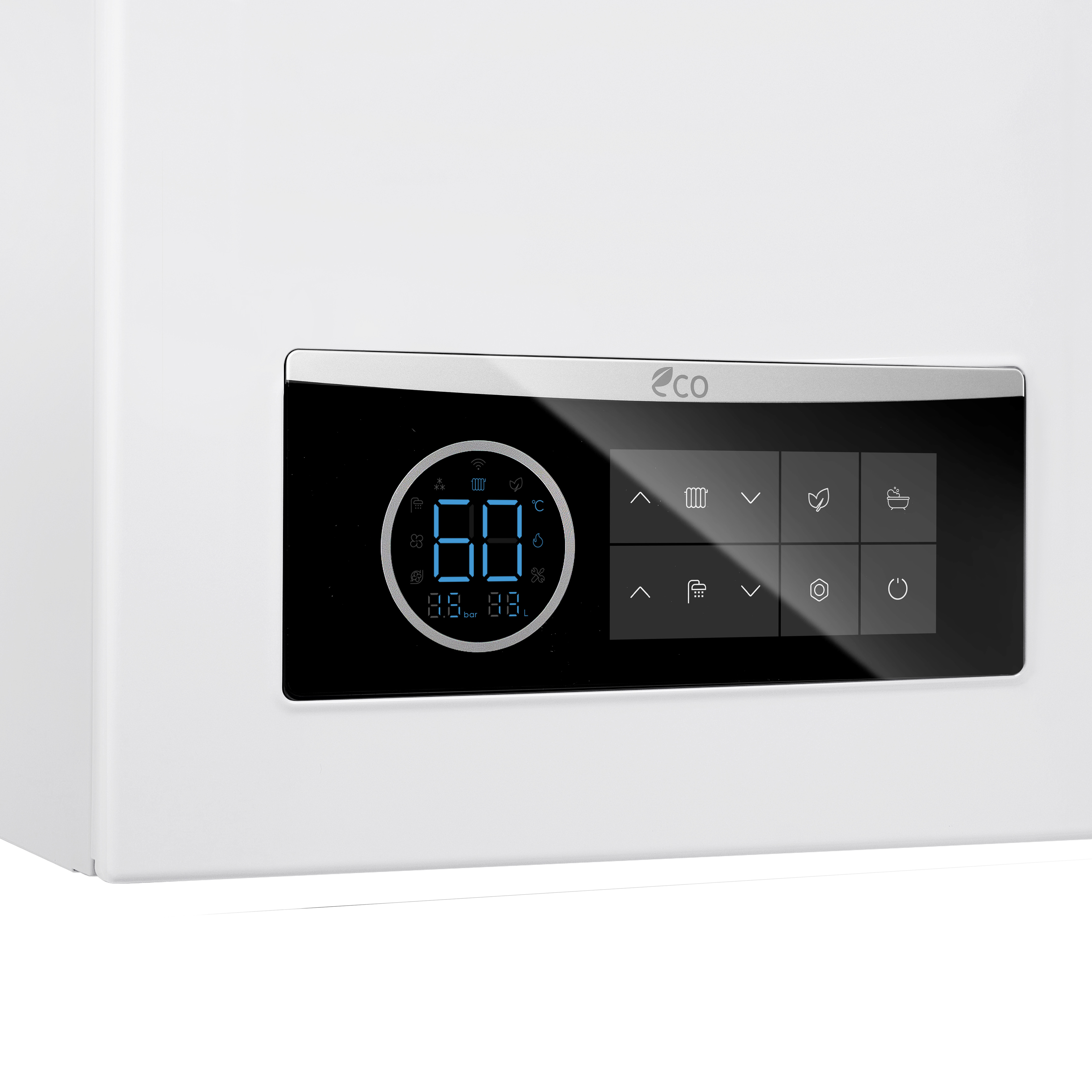 Возможность эксплуатации в погодозависимом режиме. При подключении наружного датчика температуры и регулятора температуры в помещении, интеллектуальная технология управления ECO повышает энергоэффективность котла.