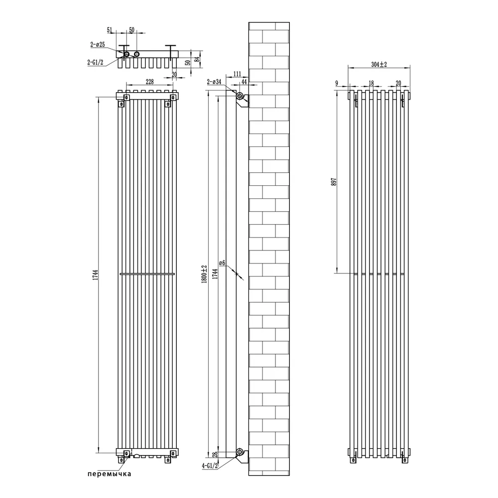 Радиатор секционный - 1шт, кронштейн - 4шт, комплект дюбелей и анкеров