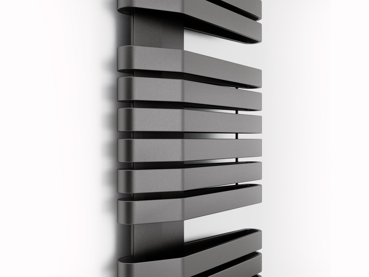 Iron S отличает большая площадь нагрева и, как следствие, высокую мощность этой модели. Плоские трубки были обернуты вокруг несимметрично, относительно коллектора, что делает модель прочной. Смещение коллектора в сторону, облегчает просушку текстиля. Большая тепловая мощность и современный дизайн тесно сочетаются в этом радиаторе. Радиатор доступен высотой от 730 мм до 1705 мм, шириной 500 мм или 600 мм. Более 250 цветовых решений на ваш вкус. Подключение: водяное, электрическое.