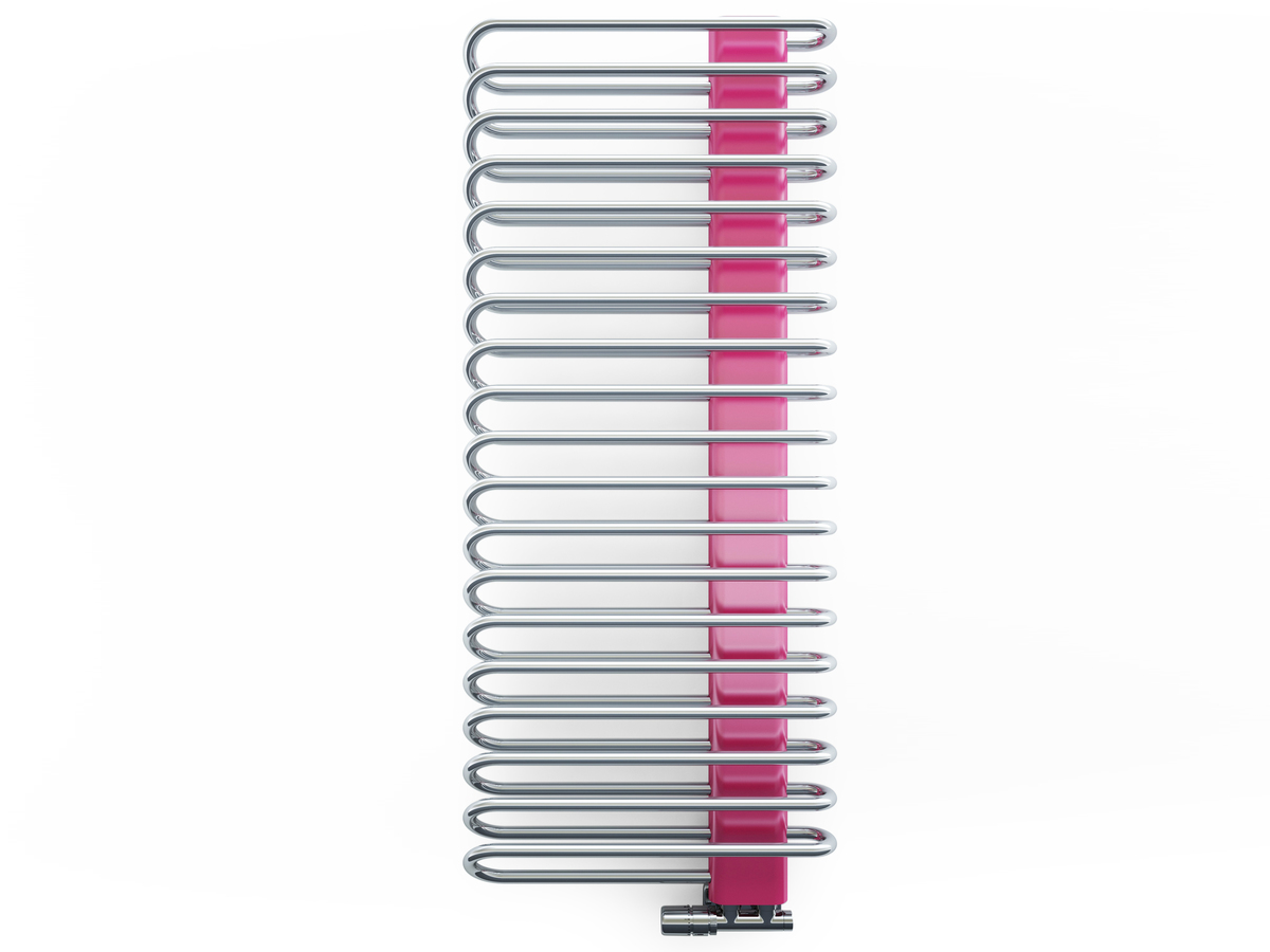 Самый большой и самый вместительный полотенцесушитель Terma Michelle (Терма Мишель) 1620 мм на 600 мм, при этом вовсе не кажется не тяжелым, за счет правильной пропорции высоты и ширины. На него удобно вешать и снимать предметы, можно использовать все пространство полотенцесушителя и разместить практически все вещи из стиральной машины. При заказе радиатора вы можете выбрать цвет самого радиатора и цвет вертикальной панели, по истечению времени вы сможете заказать сменную панель в другом цвете, это практично если у вас поменяется интерьер. Кроме того сам радиатор Мишель может быть окрашен по каталогу палитры или выполнен в гальванике (хром, матовый хром). При заказе также стоит учитывать что эта модель не переворачивается и поэтому нужно указывать в какую сторону смотрят горизонтальные перемычки. Радиатор Мишель может быть водяным или электрическим. Как и в случае со всеми остальными радиаторами в водяном исполнении мы рекомендуем заказывать оцинковку.