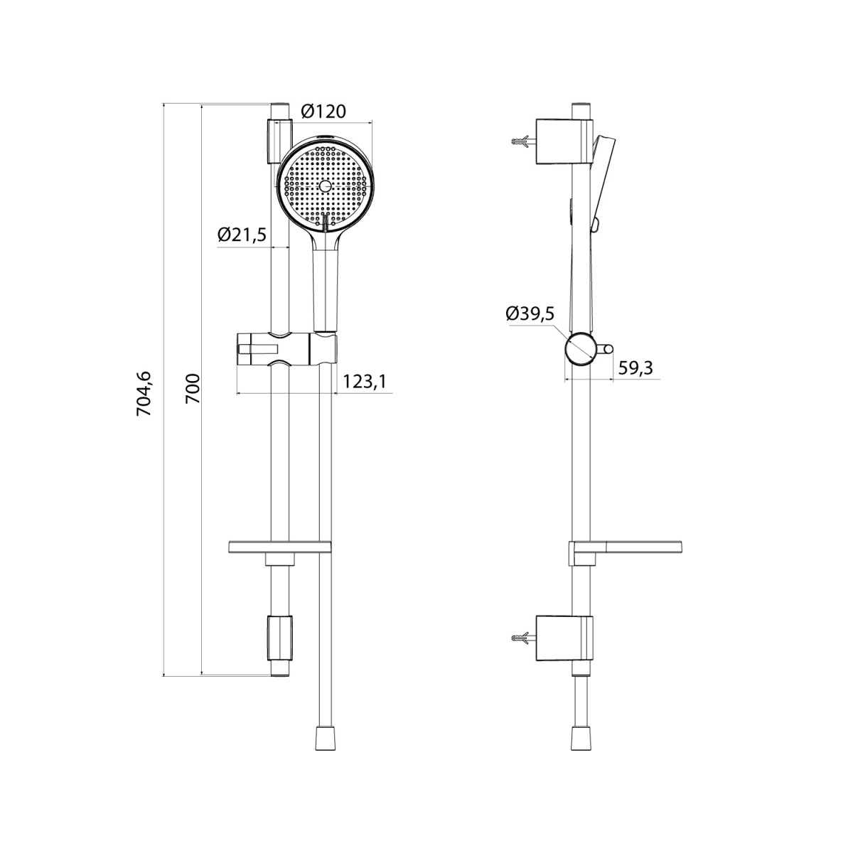 - Оптимальный размер душевой стойки – 700 мм.
