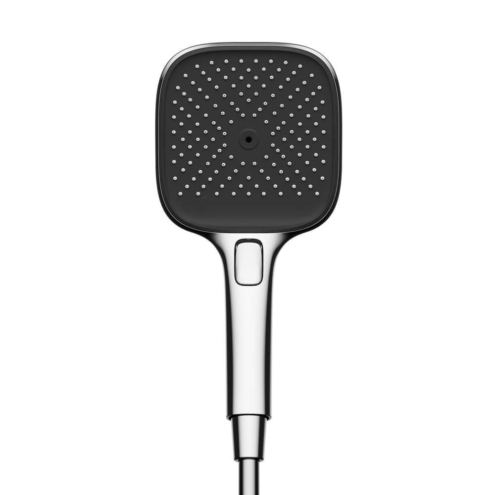 Душевая лейка SANCOS Nok square, кнопочное управление, 125x125 мм, 3 режима, цвет хром/черный матовый, арт. SC6002CH-B