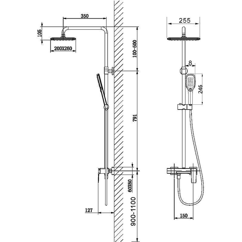 - Форма верхнего душа Прямоугольная