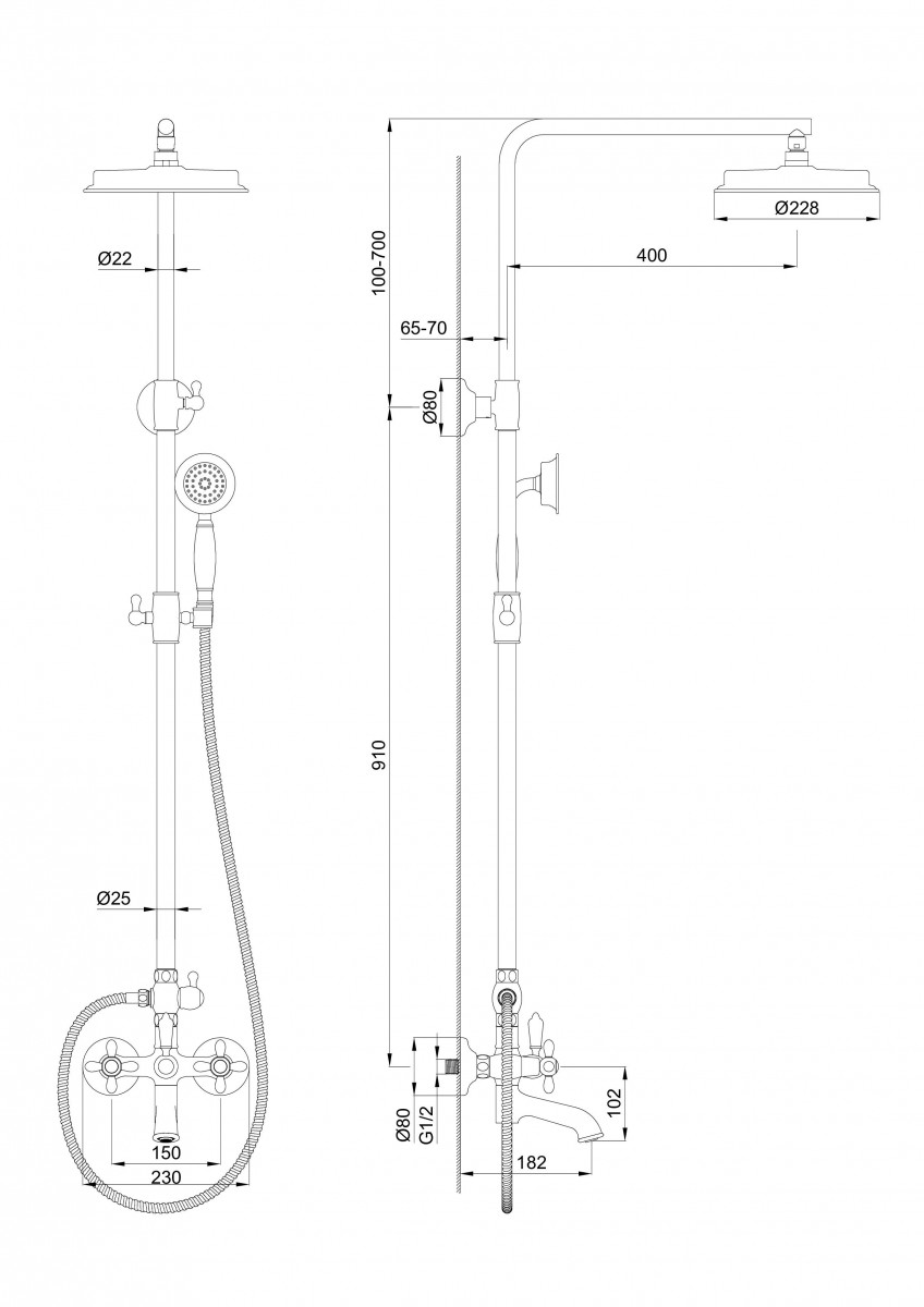 Душевая система Wonzon & Woghand RETRO WW-88739020-PG (золото)