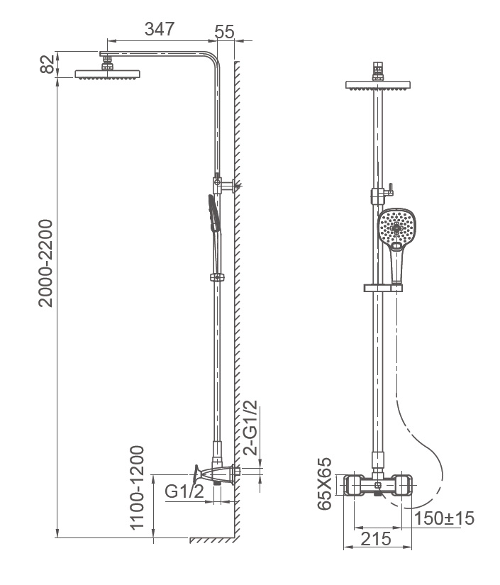 - Комплектация Смеситель / Душевой шланг/ Держатель для душа / Душевая штанга / Верхний душ / Душевая лейка / Эксцентрики / Монтажный комплект