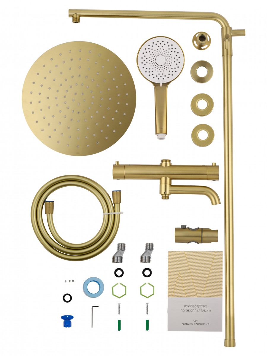 Душевая система Wonzon & Woghand STICK WW-88739903-BG (брашированное золото) с термостатом