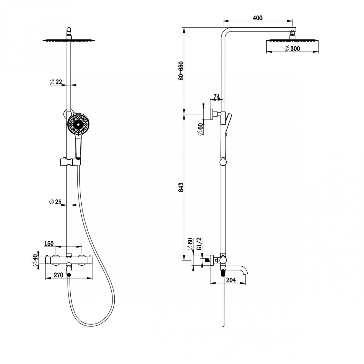 - Комплектация Смеситель / Душевой шланг/ Держатель для душа / Душевая штанга / Верхний душ / Душевая лейка / Эксцентрики / Монтажный комплект