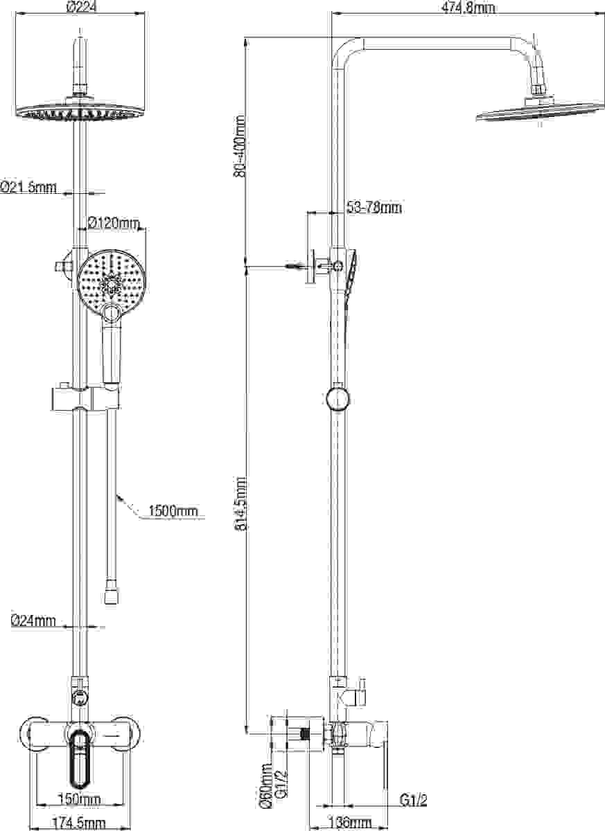 - Размеры / диаметр головки верхнего душа (см) 22,4