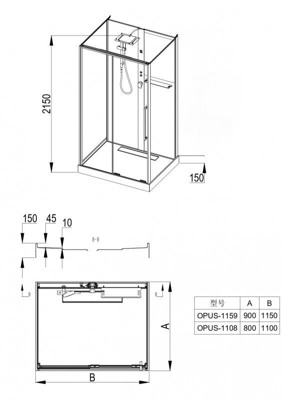 - Раздвижная дверь: прозрачное стекло толщиной 6 мм;