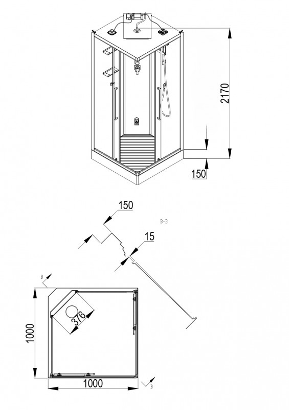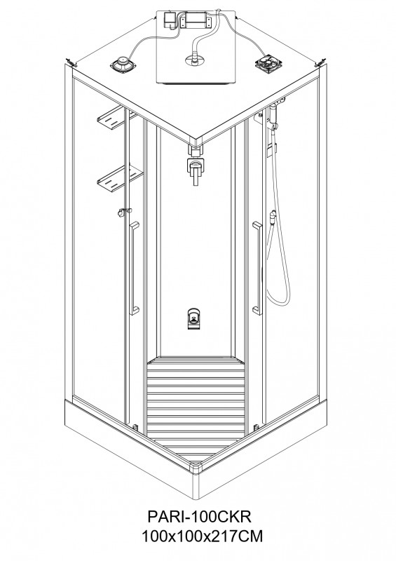 - Панель управления (пар, Bluetooth, радио, озонирование, освещение, вентилятор);