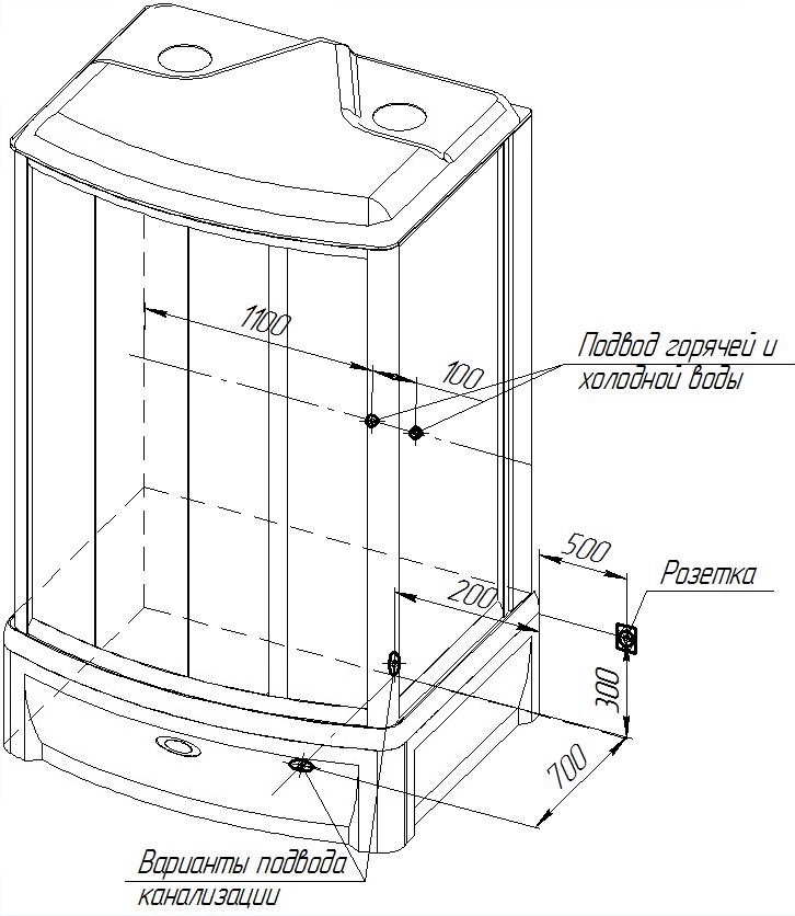 | Форма поддона душ кабины |