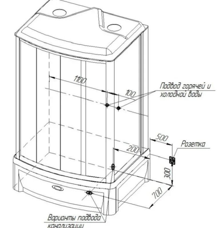- Габариты поддона С высоким поддоном