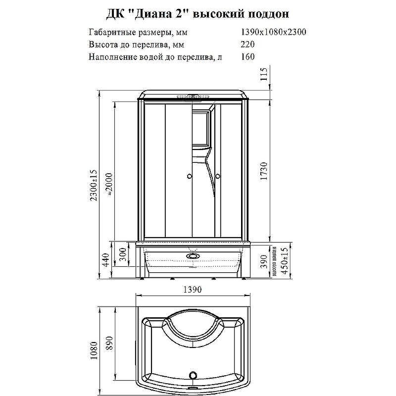 - Габариты поддона С высоким поддоном
