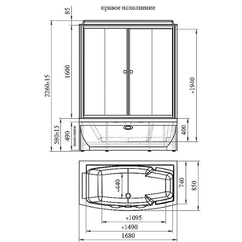 - Габариты ванны (поддона) С ванной стандартной глубины