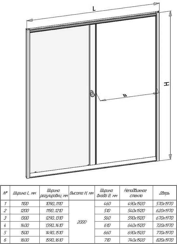 Душевая дверь Radomir Вита 1-63-2-0-0-1091 1300*2000 мм (хром матовый/матовое)