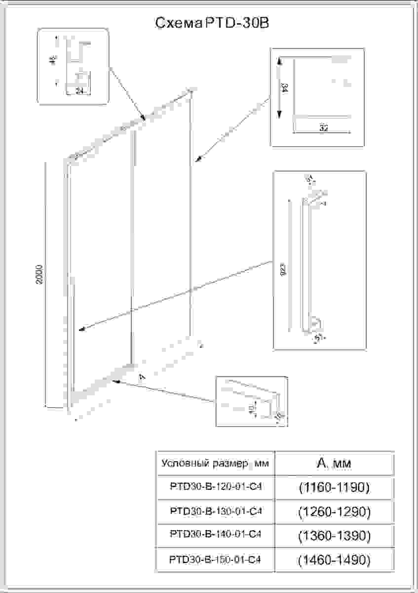 Душевая дверь Veconi Premium Trento PTD-30B PTD30-B-150-01-C4 1500*2000 мм (чёрный матовый/прозрачное)