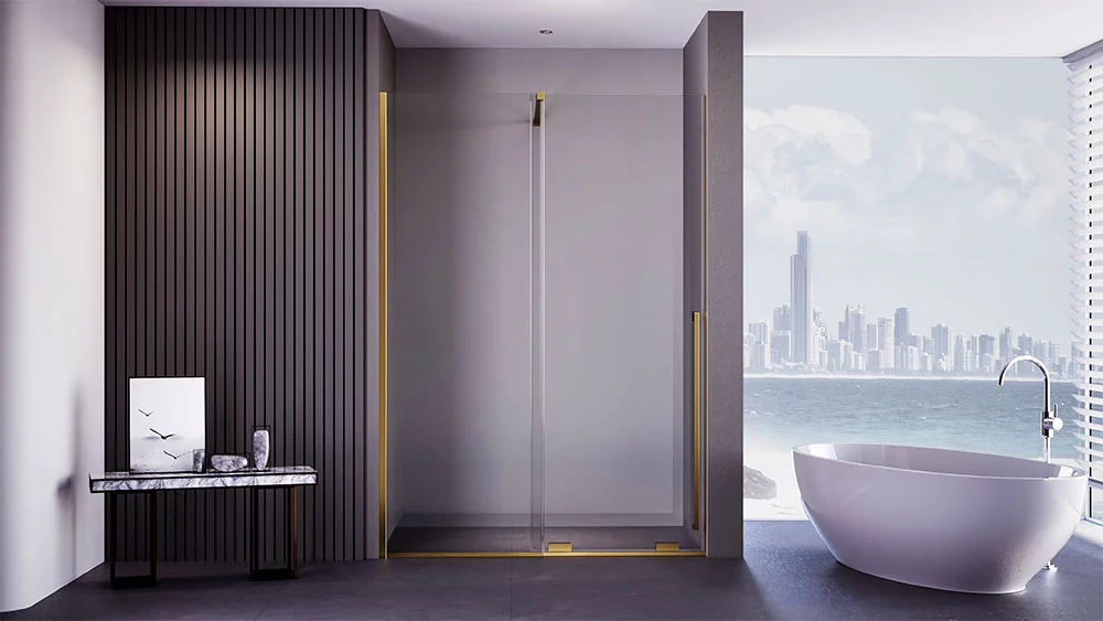 Душевая дверь Veconi Premium Trento PTDW-50G PTDW-50G-150-01-C4 1500*2000 мм (брашированное золото/прозрачное)