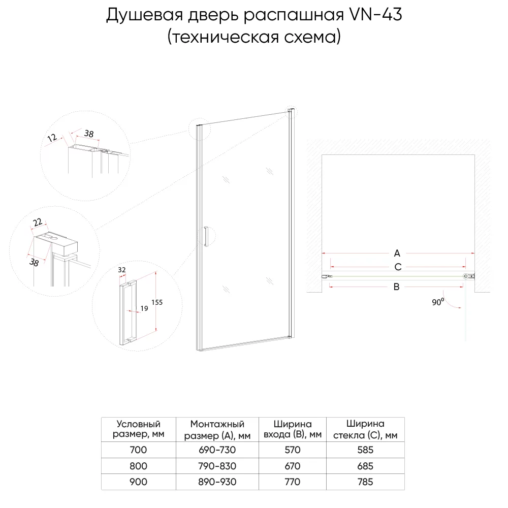 Душевая дверь Veconi VN-43 VN40-140-01-C1 700*1950 мм (хром/прозрачное)