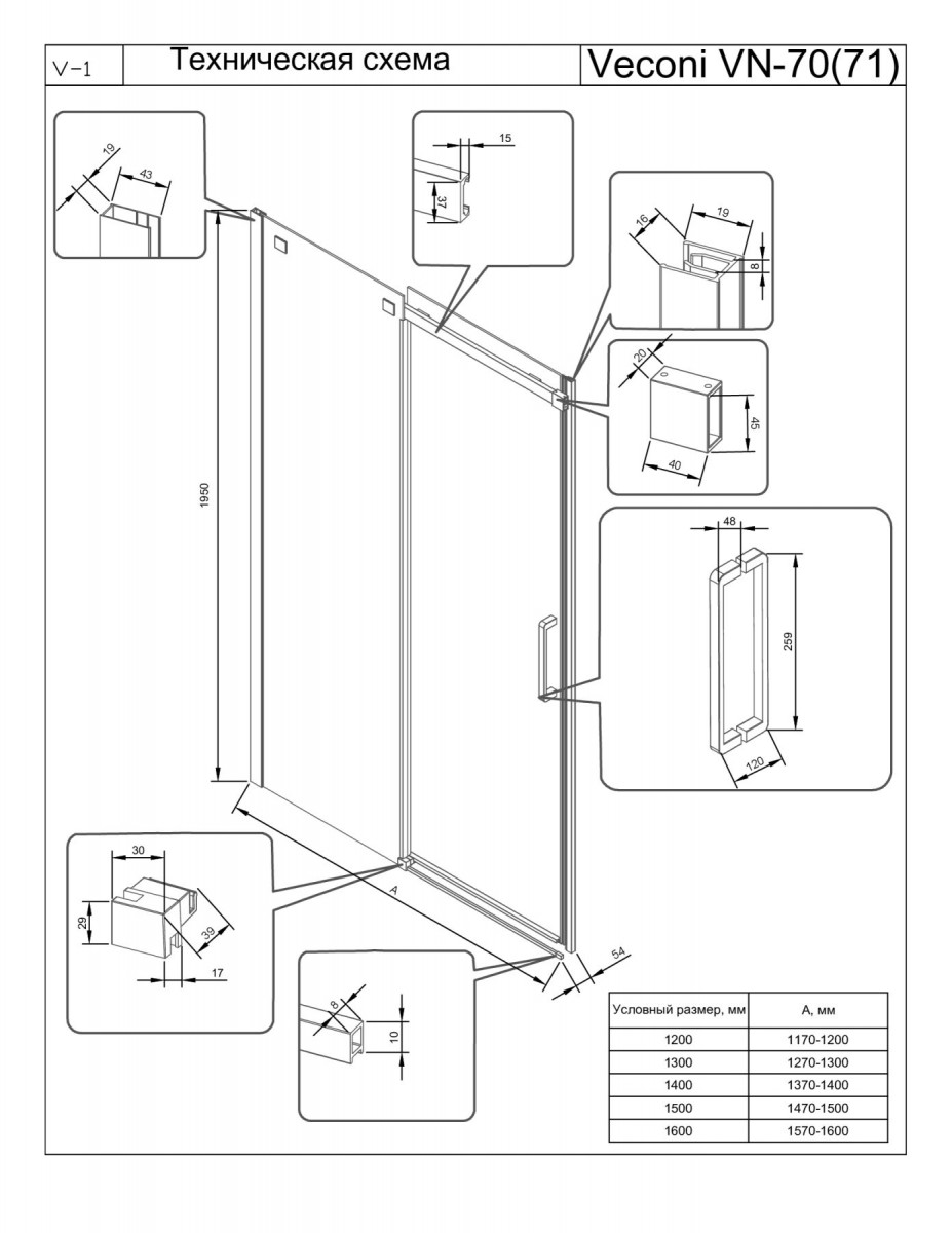 Душевая дверь Veconi VN-70GR VN70GR-140-01-C4 1400*1950 мм (графит брашированный/прозрачное)