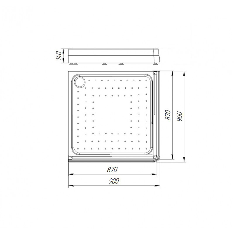 Квадратный душевой поддон 90 — отличный и недорогой вариант обустройства душевой в небольшой ванной комнате. Возможна установка Душевого угола 90 или карниза со шторкой — и удобный уголок для душа готов. Материалом для поддона служит прочный и гигиеничный сантехнический акрил, который прекрасно выдерживает ежедневную эксплуатацию. Поддон устанавливается на металлический каркас, что обеспечивает надежность и устойчивость конструкции. Низкий поддон смотрится легко и современно, высота бортика 14 см удобна в эксплуатации для людей всех возрастных категорий. Акриловый поддон быстро нагревается и никогда не бывает холодным, что повышает комфорт эксплуатации. Также во время душа практически отсутствует шум от падающей воды. Дно душевого поддона 90 имеет особое рельефное покрытие с технологией Radomir® Non-Slip, которое предохраняет от скольжения в процессе принятия душа. В комплектацию входит акриловый поддон, рама-подставка, устройство слива.