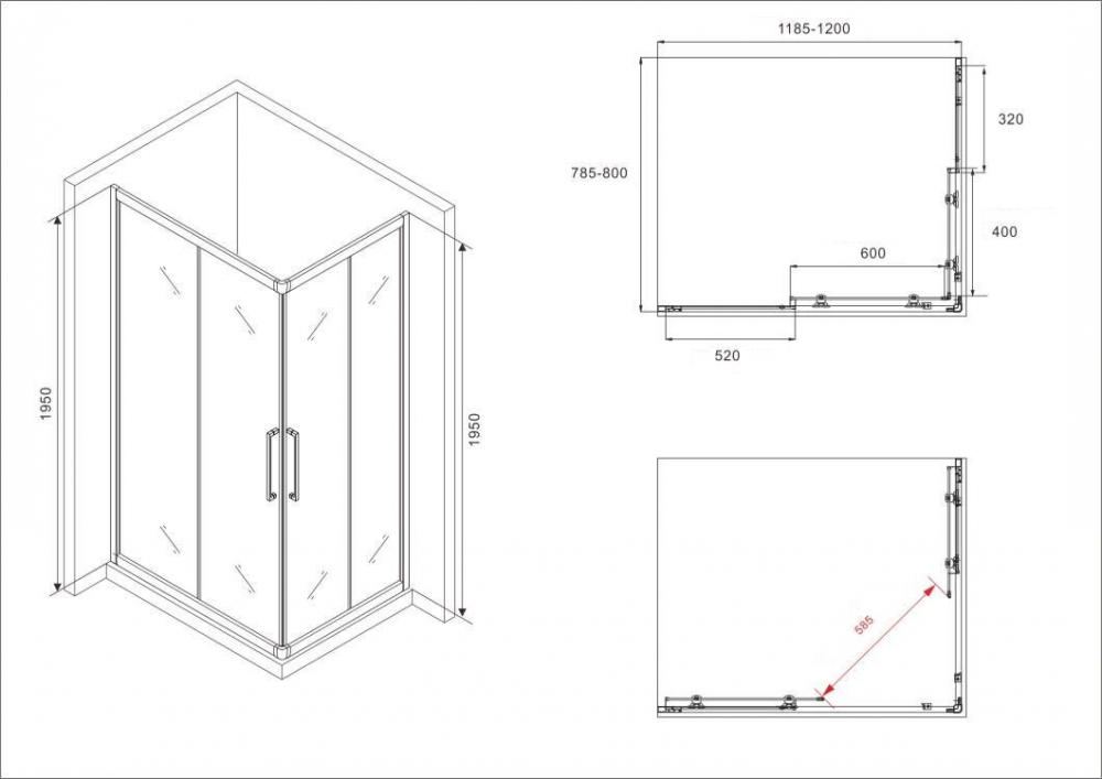 Душевой уголок Abber Schwarzer Diamant AG02128MH 1200*800 мм (хром/матовое)