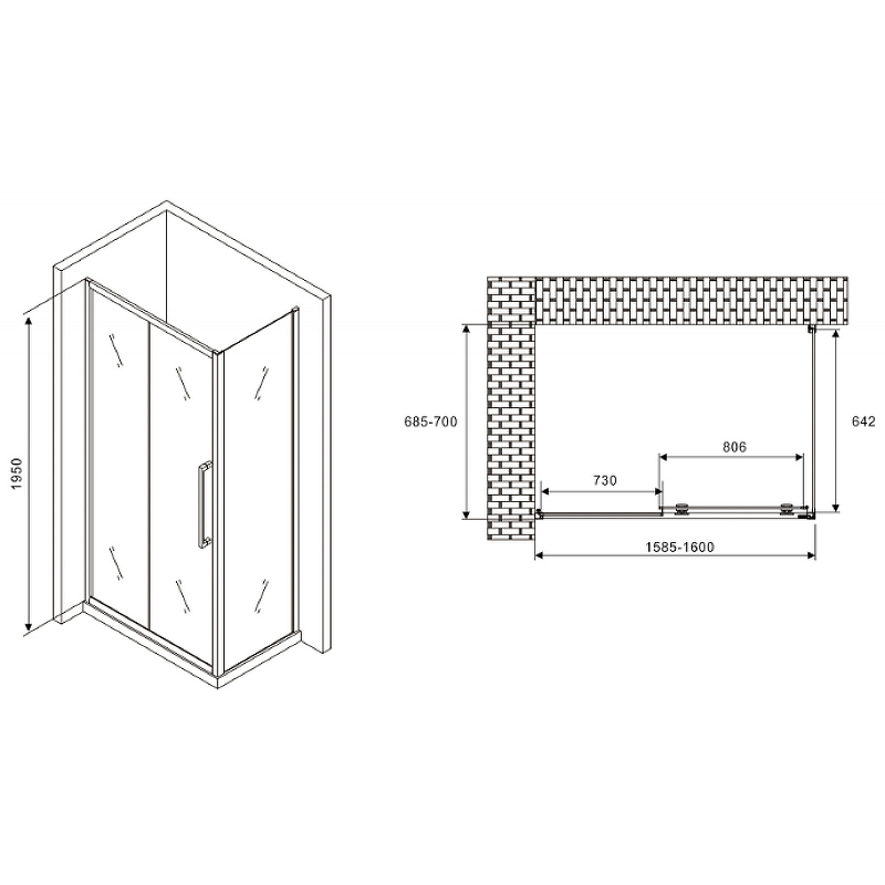 Душевой уголок Abber Schwarzer Diamant AG30160MH-S70M 1600*700 мм (хром/матовое)