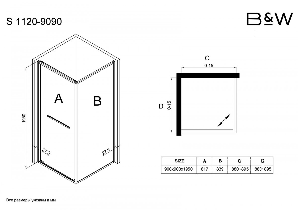 - Размеры: 90 × 90 × 195 см