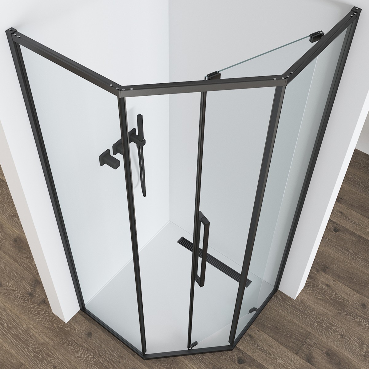 Душевой уголок Black&White Stellar Wind S1150-9090GM 900*900 мм (оружейная сталь/прозрачное)