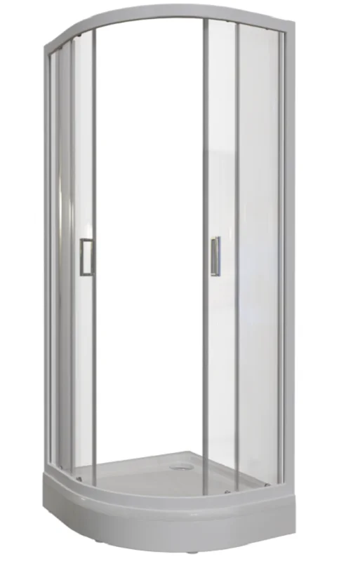 Душевой угол Берген RD 90х90 радиальный, стеклянные шторки прозрачные, поддон на раме-подставке с устройством слива хром, профиль белый