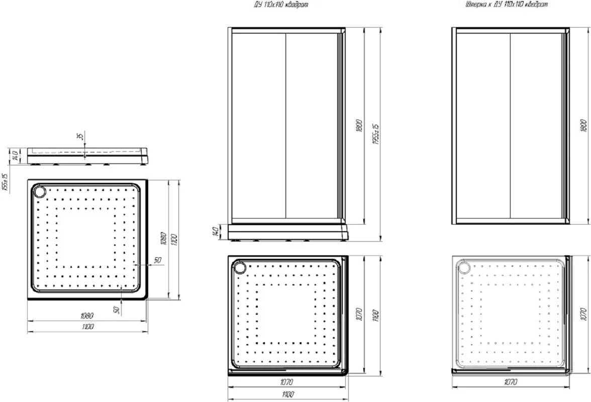 - Душевой угол 110 квадратный