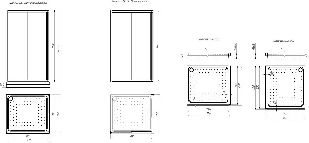 Душевой уголок Radomir Дрим 1-09-2-0-0-1231 1100*1000 мм (хром матовый/матовое)