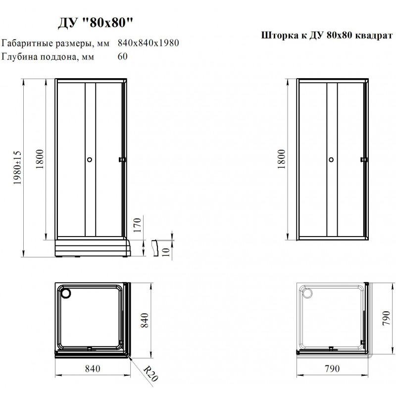 Душевой уголок Radomir Люкс 1-09-2-0-0-0071 800*800 мм (хром/матовое)