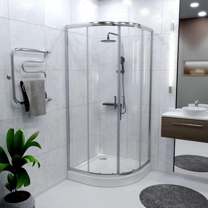 - Душевое ограждение Смарт состоит из закаленных стеклянных шторок толщиной 5 мм в хромированном профиле, акрилового поддона на металлическом каркасе с сифоном. Качественное исполнение и надежная фурнитура гарантируют долгий срок службы душевого угла.