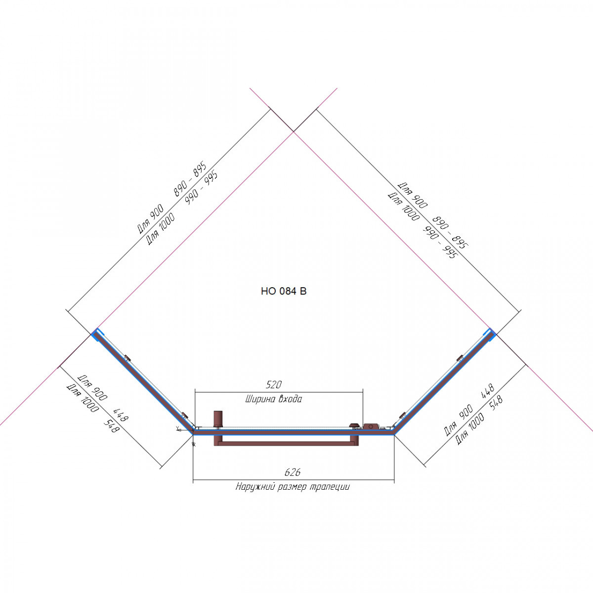 - Размеры с диапазоном регулировок: (890-895)x(890-895)