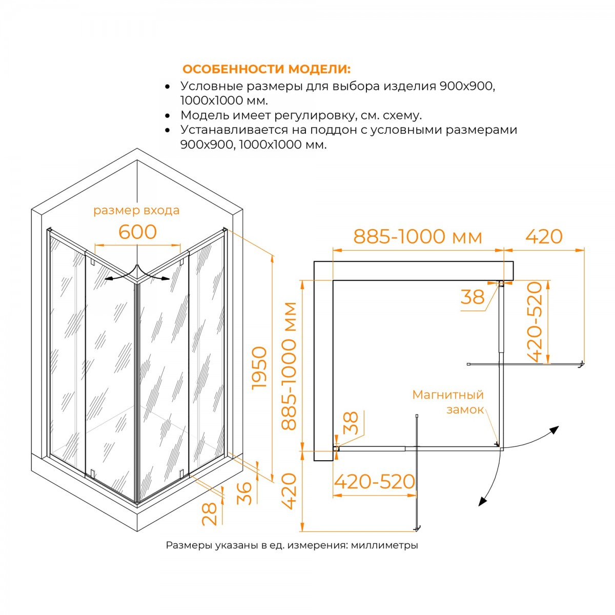 Душевой уголок RGW Passage PA-038 900*900 мм (хром/прозрачное)