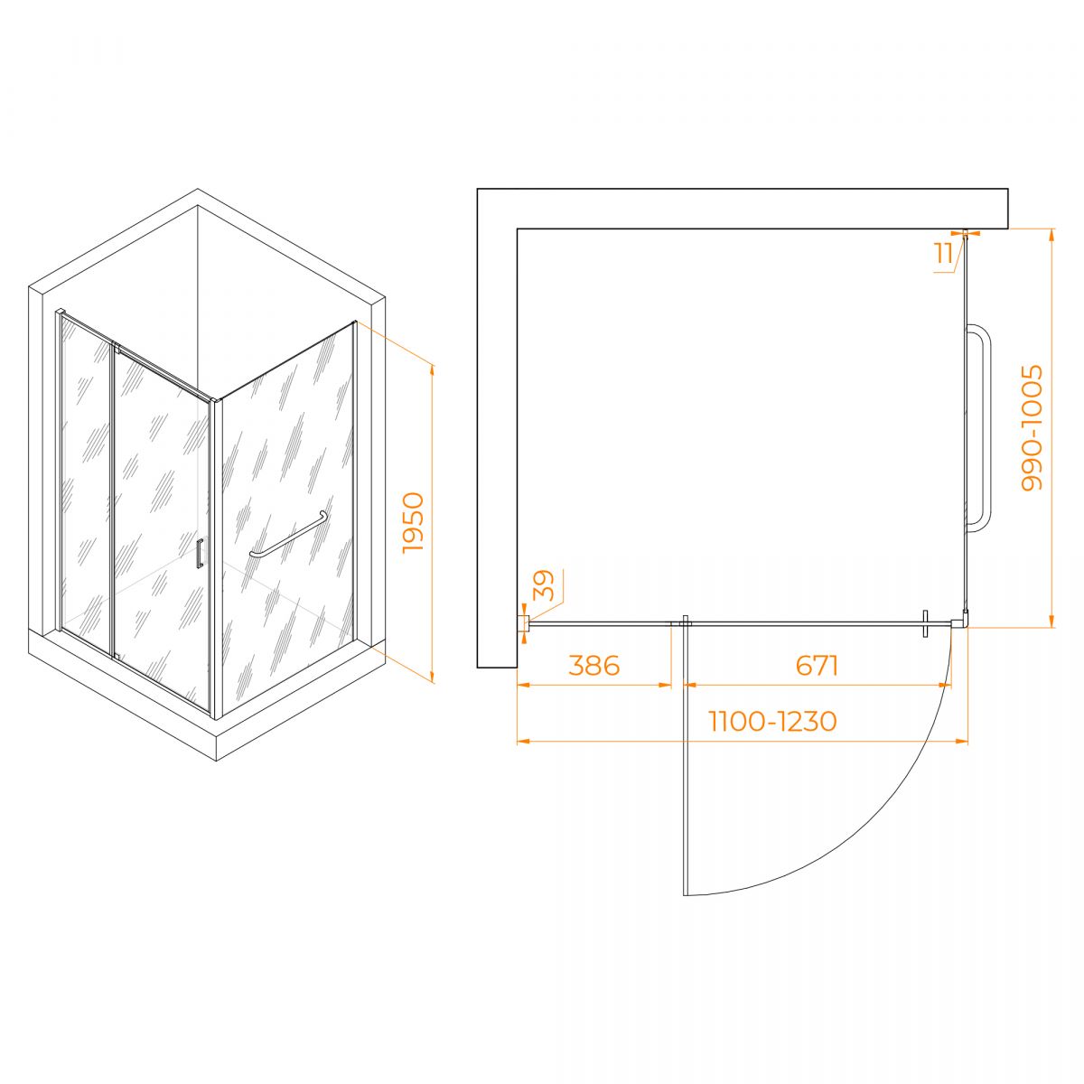 Душевой уголок RGW Passage PA-078-1 1100*1000 мм (хром/прозрачный)